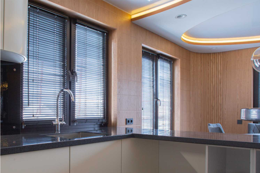 Деревянные ламели эффективно блокируют солнечные лучи, помогая поддерживать комфортный температурный режим в помещении и защищая мебель от выцветания.