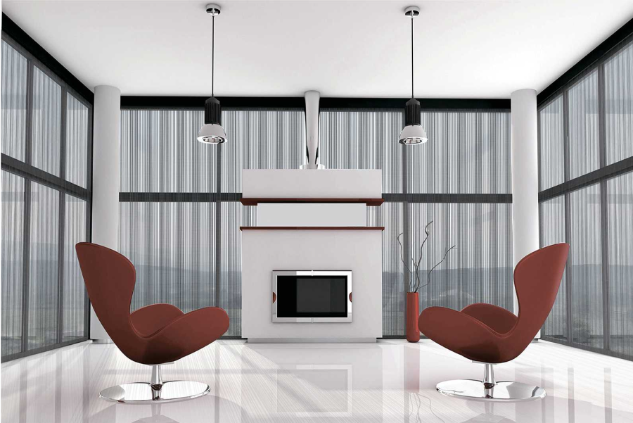 Вертикальные нитяные жалюзи часто используются для больших оконных проемов, балконных дверей и панорамных окон. При желании ламели можно сдвинуть в сторону, собрать лентой или сделать практически невидимыми, изменив угол поворота.